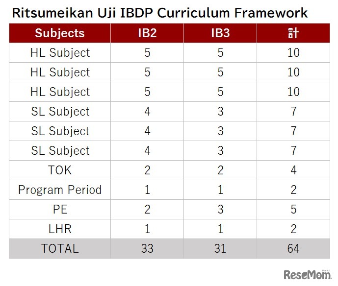 立命館宇治高等学校提供資料よりリセマム編集部作成 Ritsumeikan Uji IBDP Curriculum Framework