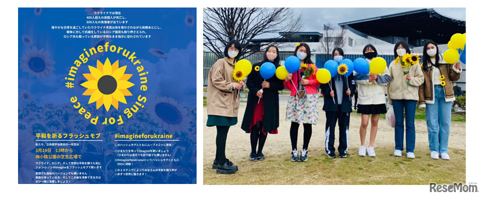 資料提供:立命館宇治高等学校 川さんが友達と一緒に計画したウクライナの平和を願うプロジェクトでは、「Imagine」をフラッシュモブで歌った