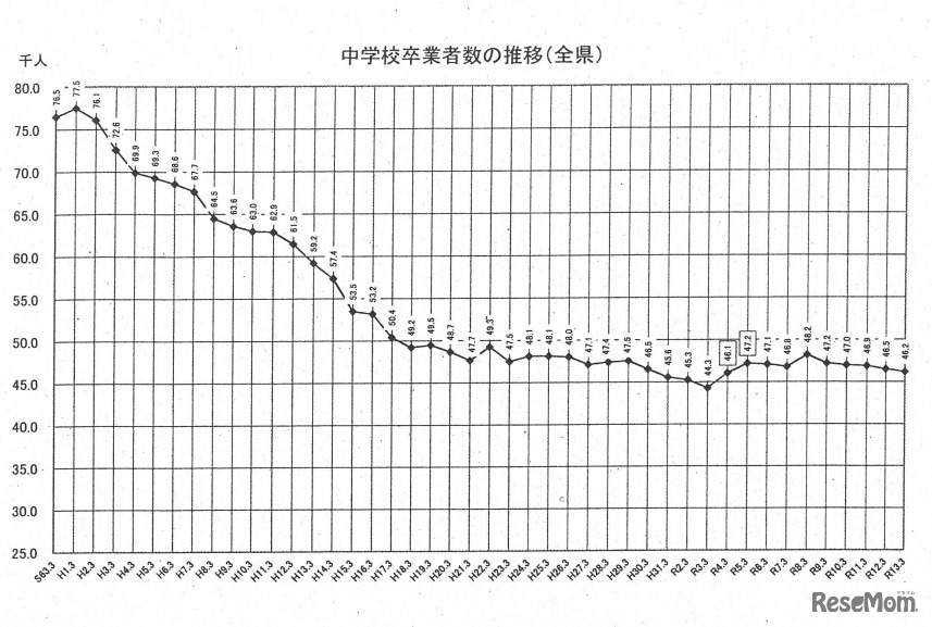 画像出典:福岡県 中学校卒業者数の推移(全県)