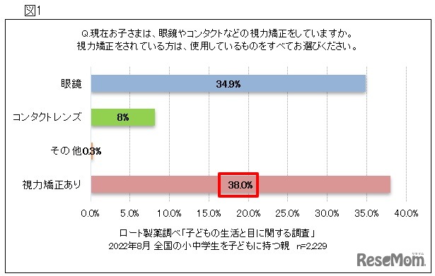 ロート製薬は「子供の生活と目に関する調査」を実施し、結果を公開した。小中学生の約4割が視力矯正しており、6割以上の親が「学力」と同等に子供の「視力」を気にしている。一方で約2割は子供の目を悪くしないための対策を何もしていないことが明らかとなった。