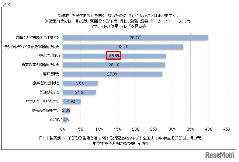 ロート製薬は「子供の生活と目に関する調査」を実施し、結果を公開した。小中学生の約4割が視力矯正しており、6割以上の親が「学力」と同等に子供の「視力」を気にしている。一方で約2割は子供の目を悪くしないための対策を何もしていないことが明らかとなった。