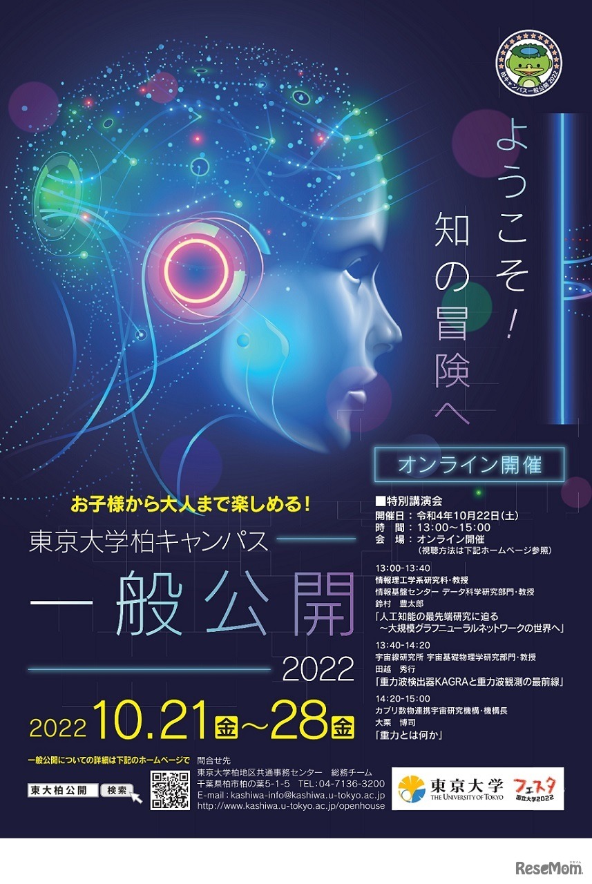 東京大学柏キャンパスが10月21日~10月28日まで、一般公開される。開催方法は一部実地開催とオンライン(ライブ配信・収録動画配信・Zoom等)。