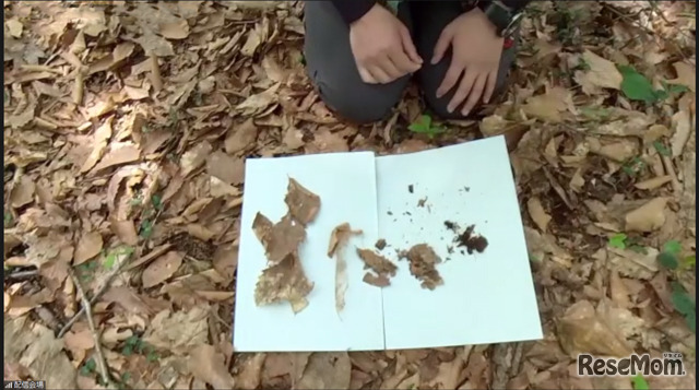 画像出典:J-POWERエコ×エネ体験ツアー2022 銀山平の森の地面の枯れ葉をめくると徐々に細かい土になる