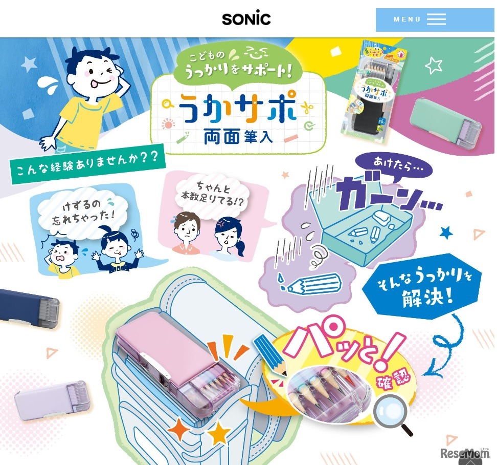 ソニックはうっかり「鉛筆を削り忘れちゃった」問題をサポートする「うかサポ両面筆入」を2022年11月に発売予定。フタを開けずに鉛筆が確認できる。