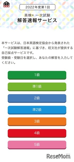 旺文社は2022年10月11日より、10月7日・8日・9日に本会場・準会場で実施された、2022年度英検第2回検定対応の「英検一次試験解答速報サービス」の提供を開始した。リーディング・リスニングの自動採点、ライティングの自己採点ができる。