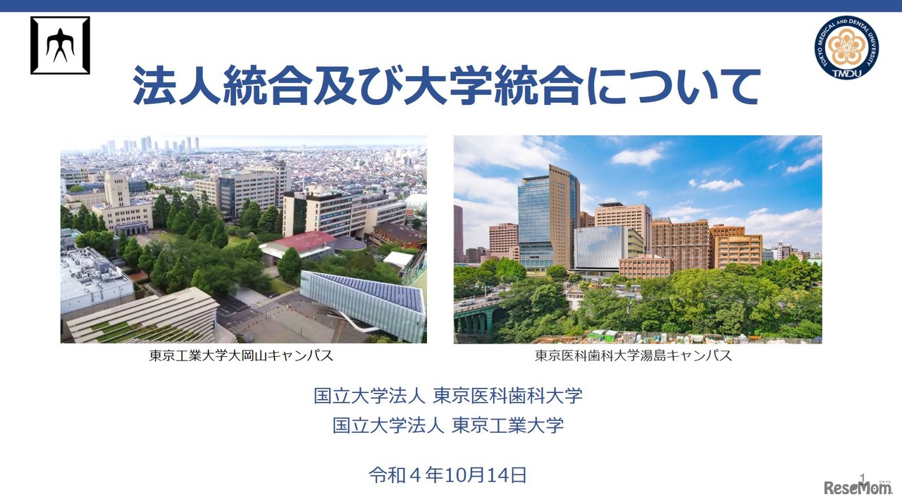 東京工業大学と東京医科歯科大学は2022年10月14日、統合に向けた基本合意書を締結した。最大の統合効果を得るため、「1法人1大学」の統合形式を選択。指定国立大学法人同士によって誕生する他に類を見ない新しい大学として、2024年度中をめどに統合を目指す。