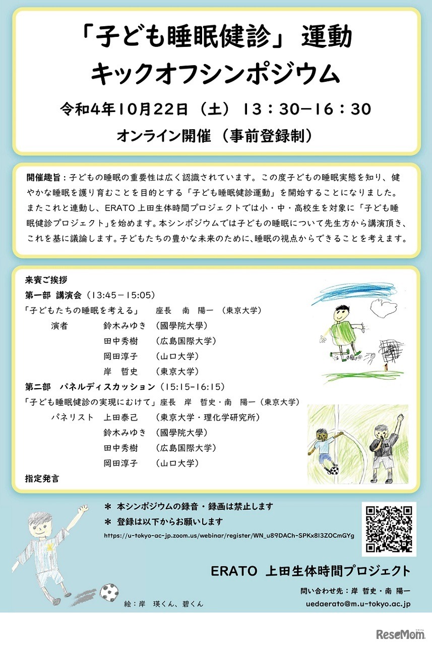 東京大学は2022年10月22日に「子ども睡眠健診運動」のキックオフシンポジウムをオンラインで開催する。参加費無料、要事前申込。