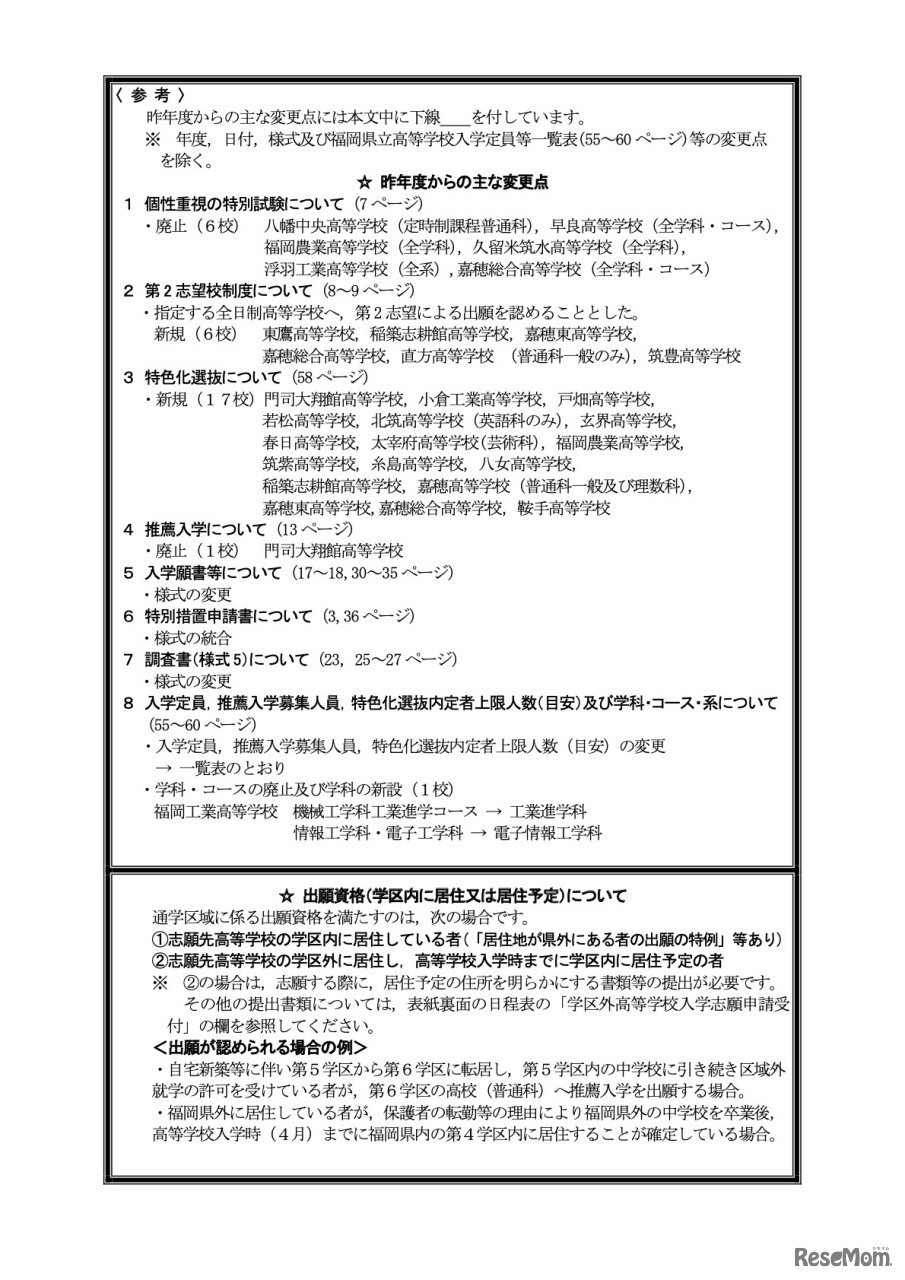 画像出典:福岡県教育委員会 昨年度(2022年度)からのおもな変更点等
