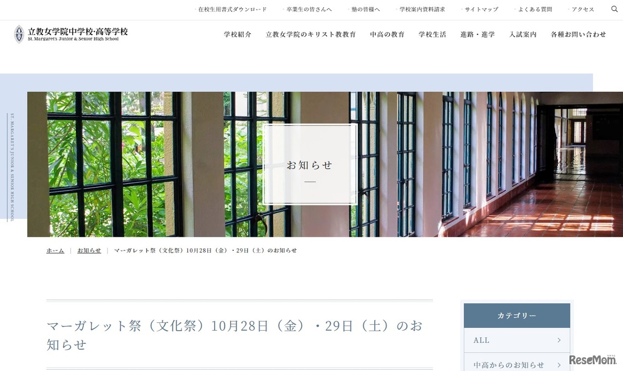 画像出典:立教女子学院中学校・高等学校 マーガレット祭のお知らせ