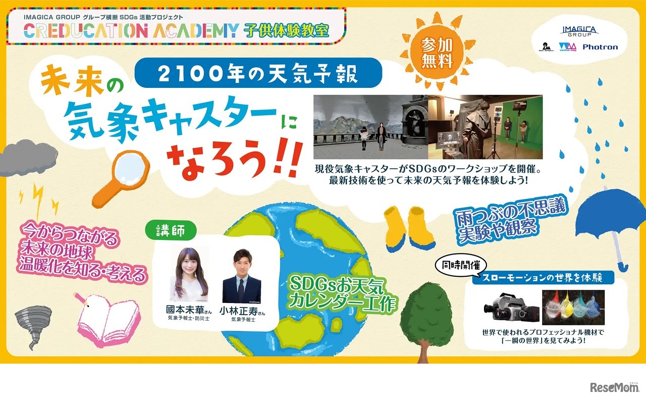 IMAGICA GROUPはグループ横断のSDGs活動プロジェクトとして「CREDUCATION ACADEMY子供体験教室」をスタート。2022年10月29日には体験型教育ワークショップ「2100年の天気予報 気象キャスターになろう!!」を開催する。要申込。