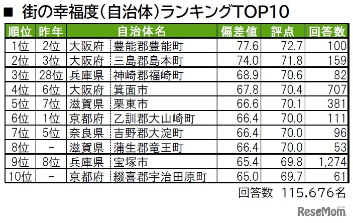 街の幸福度(自治体)ランキングTOP10