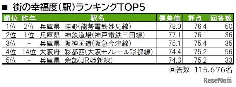 大東建託は2022年10月19日、いい部屋ネット「街の幸福度&住み続けたい街ランキング2022<関西版>」を発表。街の幸福度(自治体)ランキングの1位は「豊能郡豊能町(大阪府)」、街の幸福度(駅)ランキングの1位は「畦野(兵庫県)」となった。