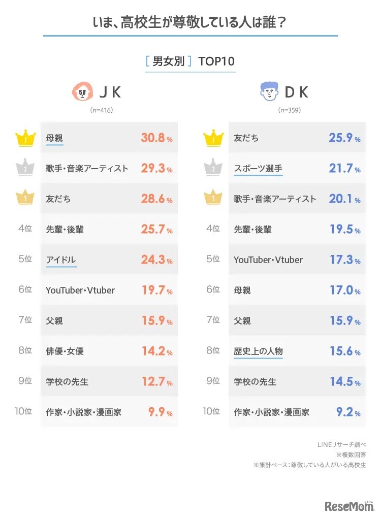 画像出典:LINEリサーチ いま、高校生が尊敬している人は誰?