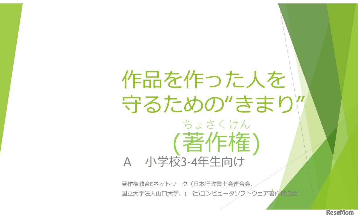 日本行政書士会連合会(日行連)、山口大学、コンピュータソフトウェア著作権協会(ACCS)の三者による著作権教育Eネットワークは2022年10月24日、小学校の中・高学年向けの著作権学習教材を無料公開した。40分程度の授業時間で著作権指導を行うことができる。