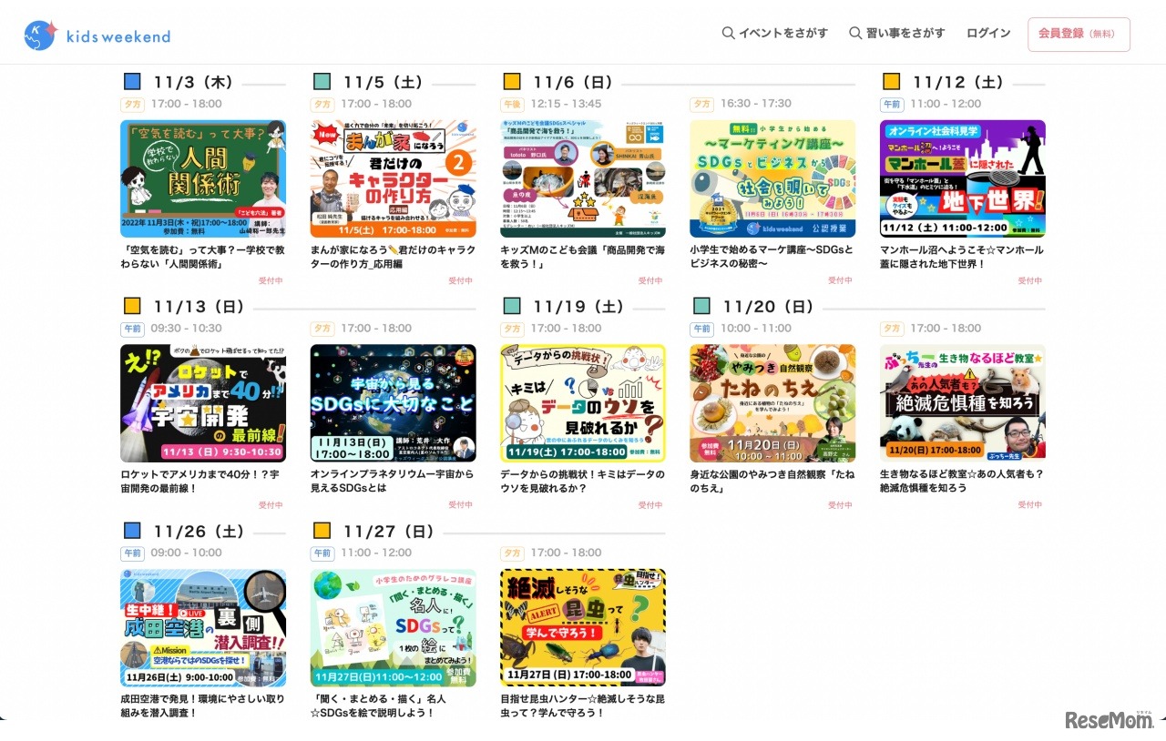 子供向け「教育×オンライン」のプラットフォーム「キッズウィークエンド」は、11月をキッズウィークエンドのSDGs月間と設定。「SDGsをもっと知ろう!」をテーマに、2022年11月3日~27日の期間に13講座からなる「オンラインこどもフェス」を開催する。