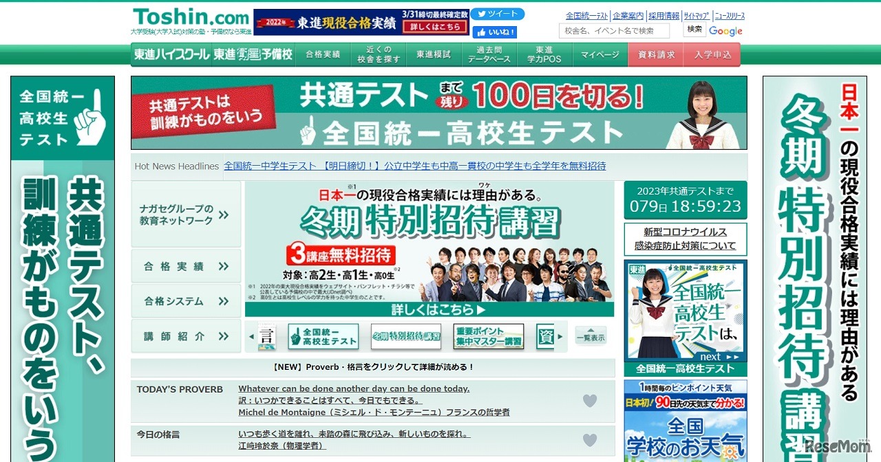 【大学受験】東進「冬期特別招待講習」最大3講座無料 3枚目の写真・画像