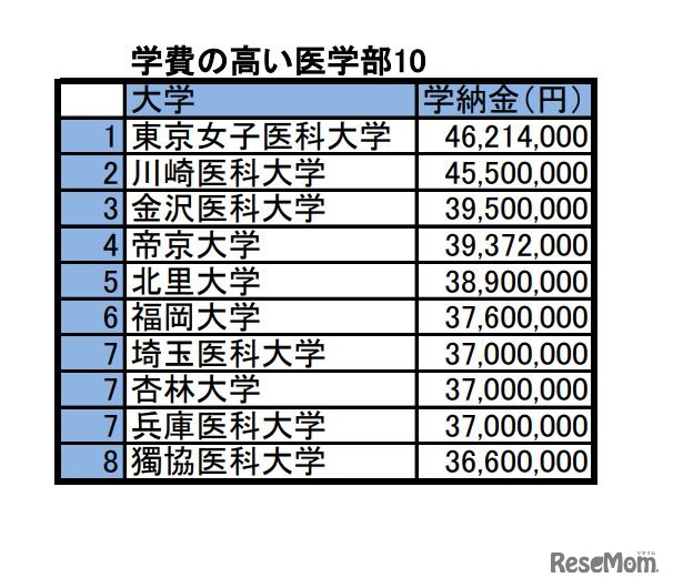 【大学受験2023】私大医学部の学費…最高は女子医大の4,600万円超 3枚目の写真・画像