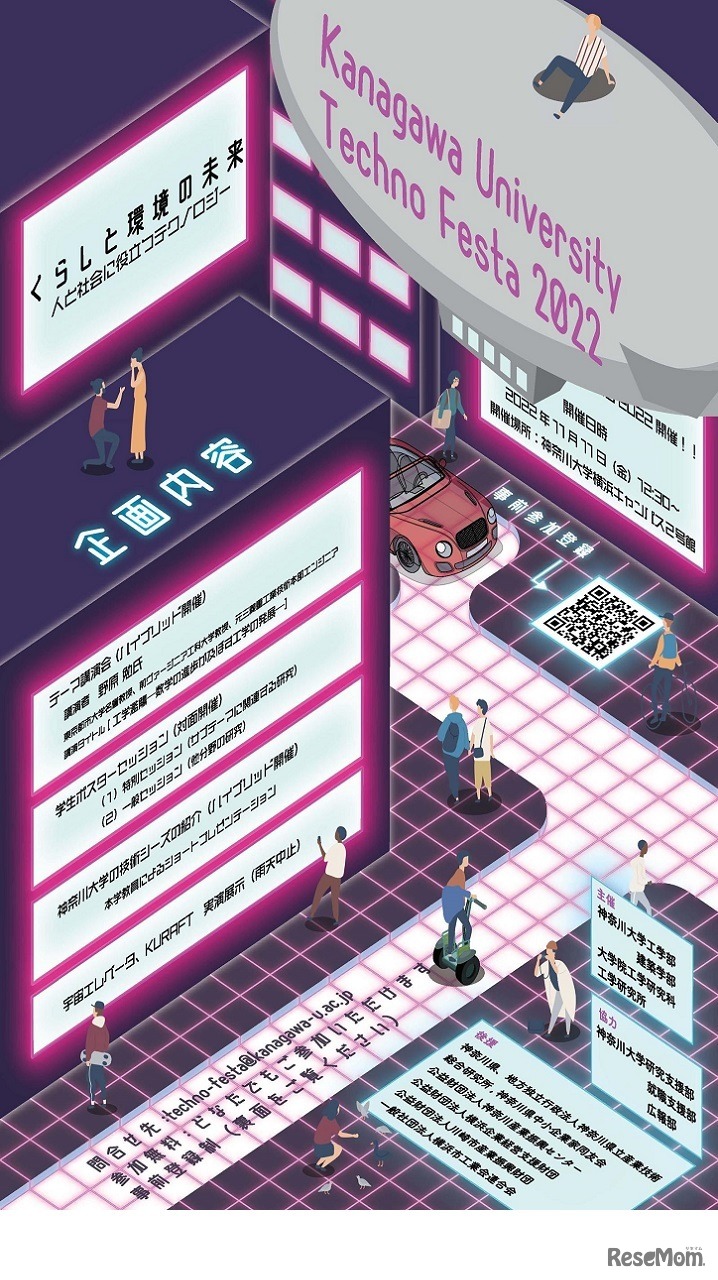 神奈川大学は2022年11月11日、神大テクノフェスタ2022「くらしと環境の未来 人と社会に役立つテクノロジー」を対面とオンラインでハイブリッド開催する。参加費無料。要事前申込み。
