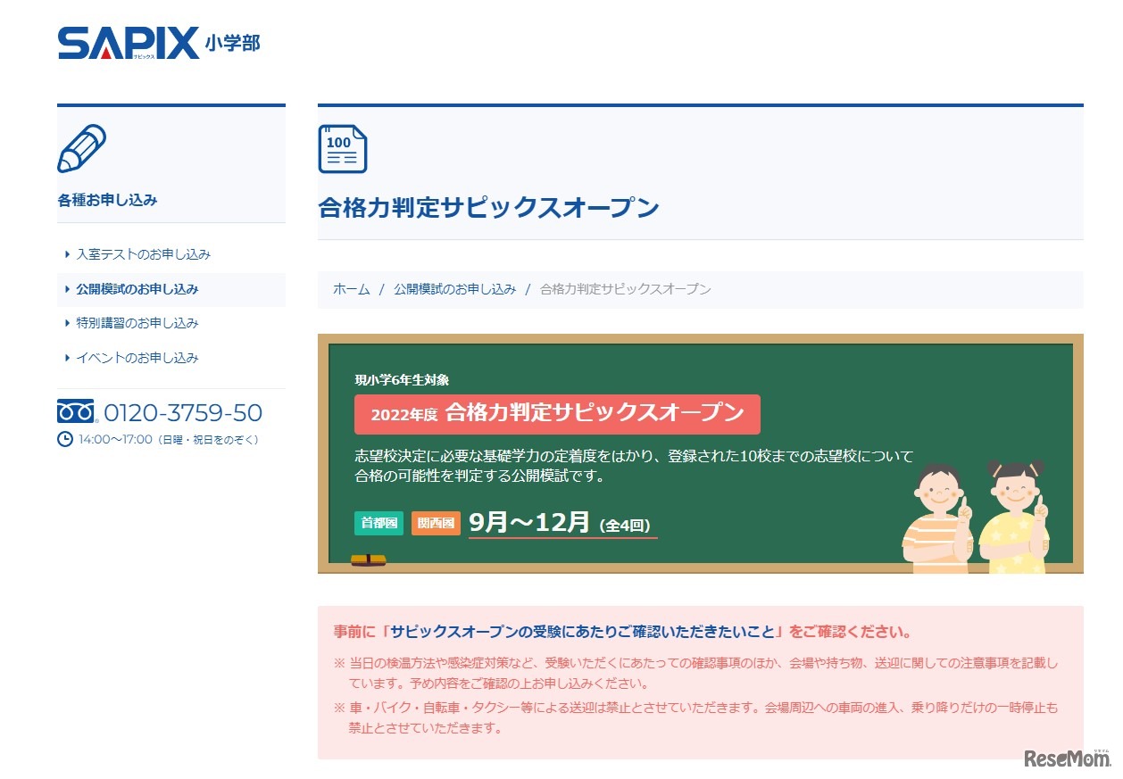 SAPIX(サピックス)小学部は、2022年10月23日に実施した小学6年生対象の「2022年第2回合格力判定サピックスオープン」の80%判定偏差値表をWebサイトに掲載している。難関校の偏差値は、男子が筑波大学附属駒場70、灘68、女子が桜蔭62等。