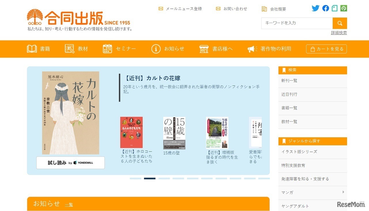 合同出版は「カルトの花嫁」出版記念トークイベントを2022年11月19日にオンラインで開催する。旧統一教会・宗教二世が信者の子供がおかれた過酷な現実について語る。事前申込制で視聴のみの参加チケットは1,000円、書籍付きチケットは2,300円。