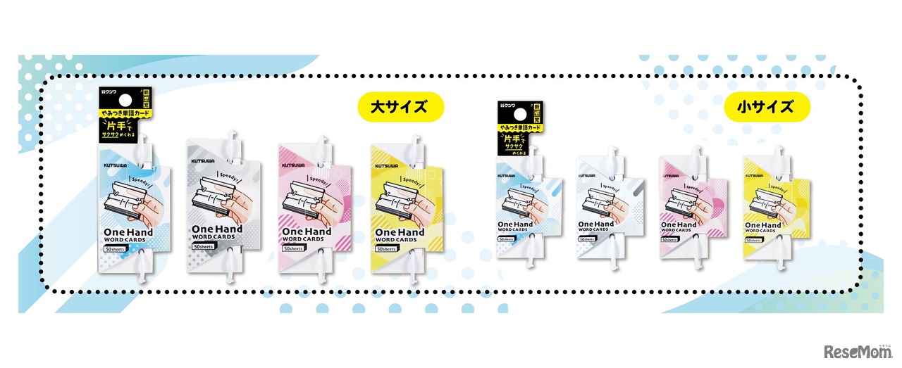 学童文具・生活雑貨メーカーのクツワは、片手でサクサクめくれる感覚がやみつきになる単語カード「ワンハンド単語カード」を発売した。カラーはブルー、ホワイト、ピンク、イエロー。価格は、大サイズ385円、小サイズ330円(税込)。