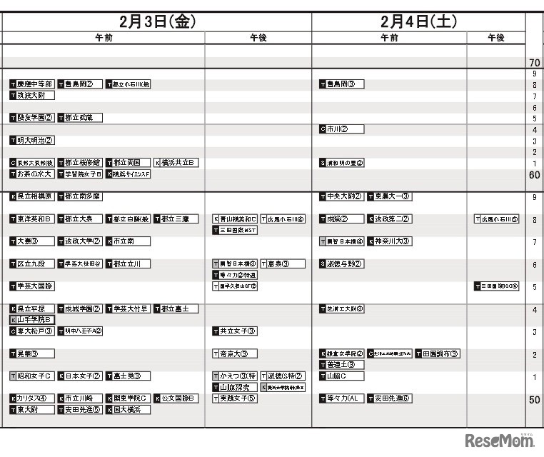 首都圏 女子(2月3日・4日)