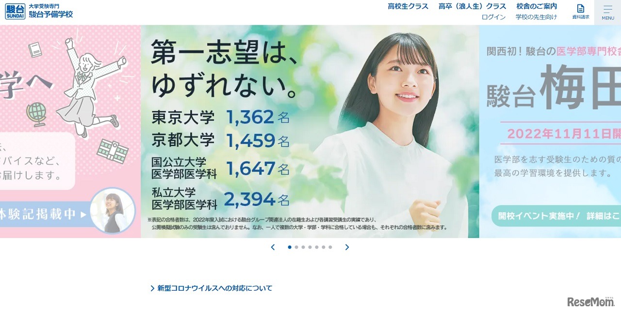 駿台は2022年12月3日に、「医学部医学科入試講演会~成績データから見る現役生の戦い方~」を京都南校にて開催する。対象は高3生、保護者。合格者の模試成績データ等、駿台の誇る情報力を駆使し、現役合格のための必勝ポイントをアドバイスする。
