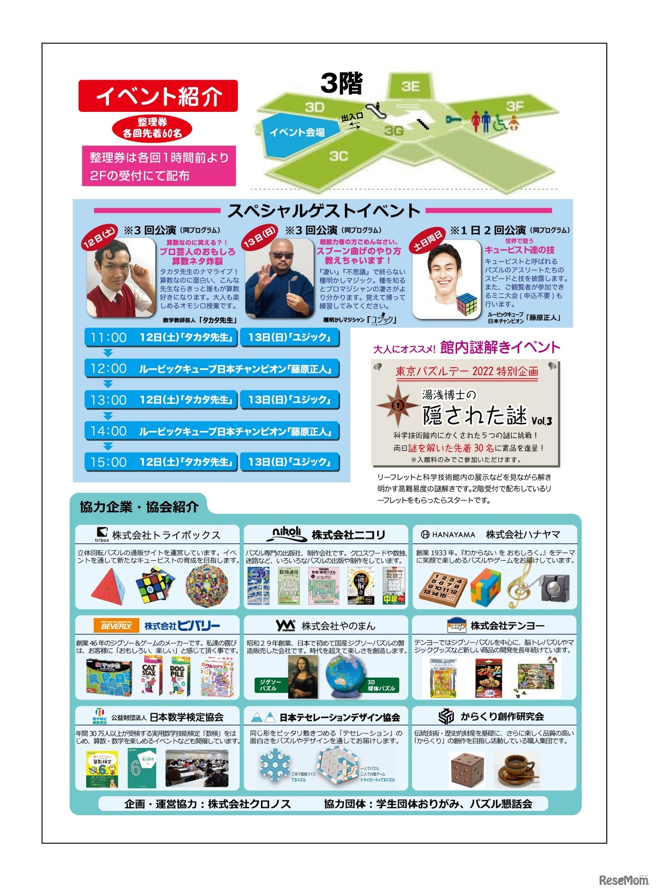 科学技術館は、ジグソーパズルや知恵の輪、キューブパズル等たくさんのパズルを体験できる「東京パズルデー 2022 in 科学技術館」を2022年11月12日~13日に開催する。出展する多くのパズルメーカーが、遊び方や解き方のコツを教える。