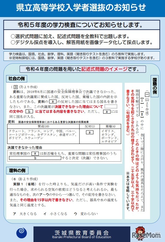 画像出典:茨城県教育委員会 県立高等学校入学者選抜のお知らせ