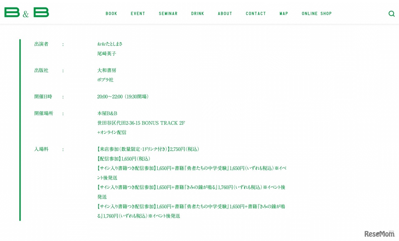 東京都世田谷区にある本屋B&Bは2022年11月15日、おおたとしまさ氏と尾崎英子氏の新刊刊行を記念したトークイベント「中学受験でわが子を守る『最強の親』になるために」を開催する。会場、オンライン配信、見逃し配信で参加可能。チケットはPeatixにて販売する。