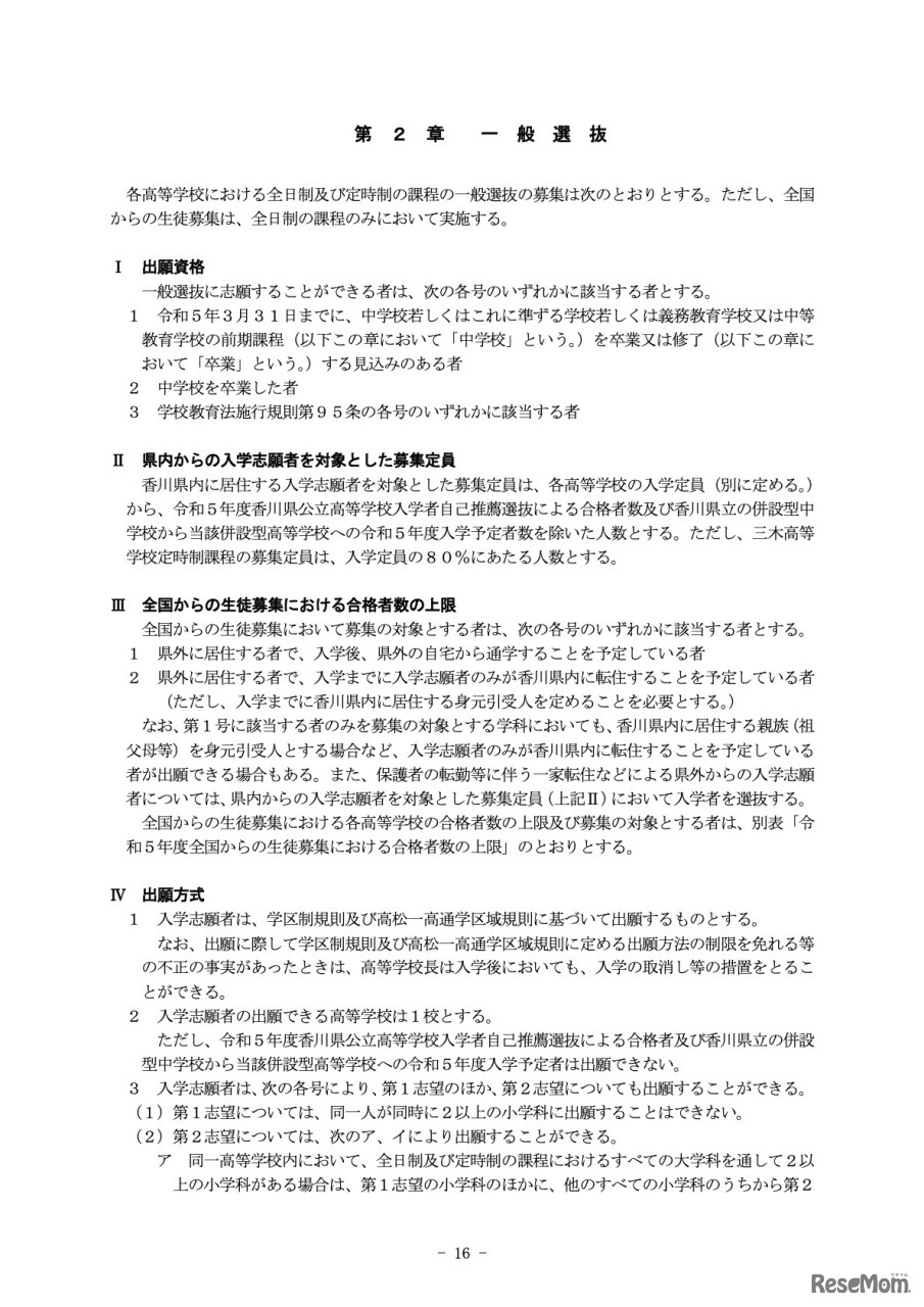 【高校受験2023】香川県公立高、全日制5,954人募集…実施細目も公表 5枚目の写真・画像
