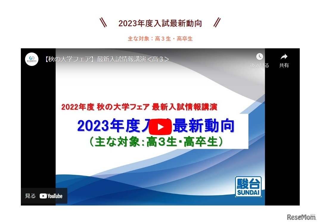 【大学受験】駿台「秋の大学フェア」入試情報や講演動画 4枚目の写真・画像