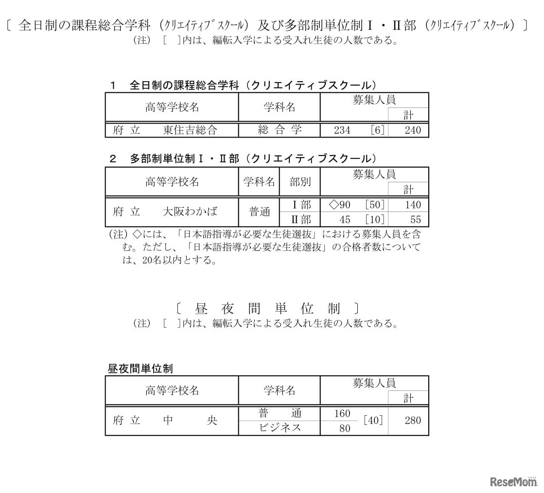 2023年度大阪府公立高等学校募集人員