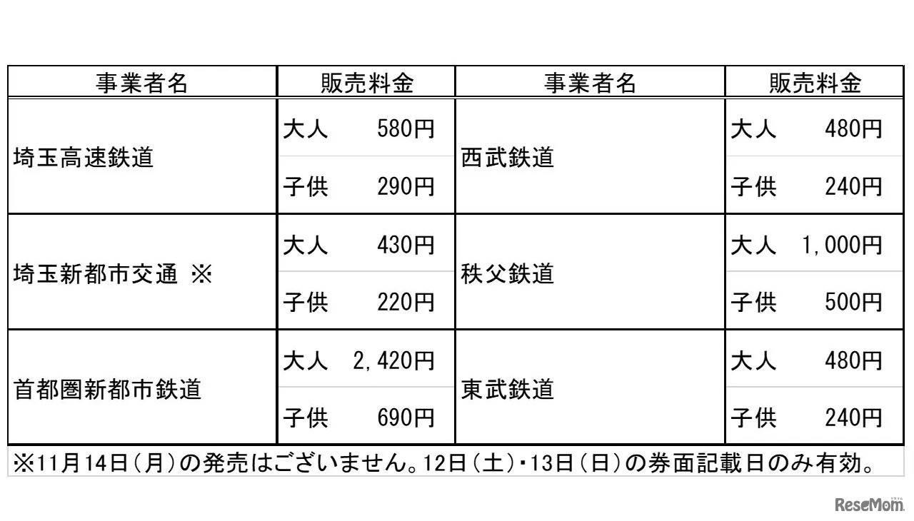 画像出典:埼玉県 記念フリー乗車券