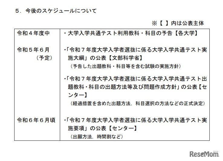2025年度大学入学共通テスト「今後のスケジュール」