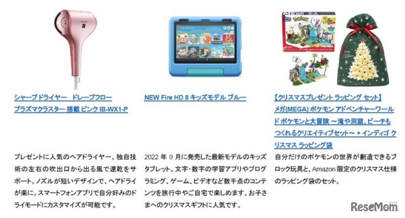 画像出典:Amazon 「クリスマスギフト2022」で人気の商品(一部)