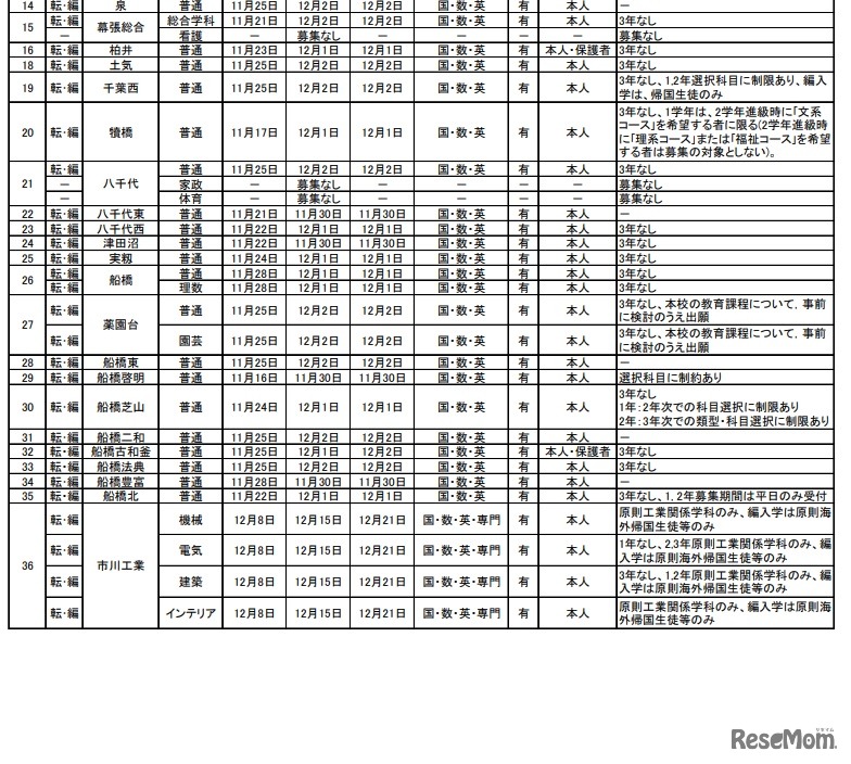 千葉県立の転・編入学…全日制高校119校で実施 2枚目の写真・画像