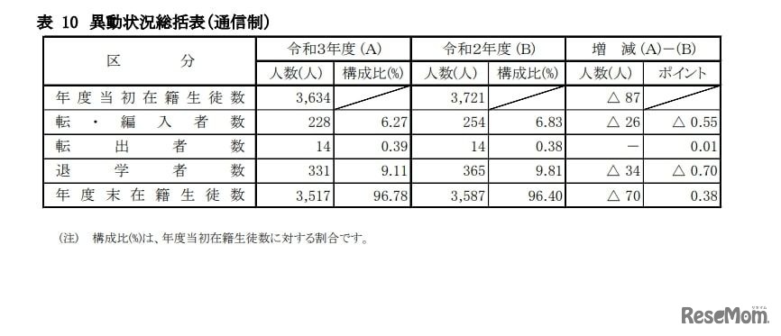 異動状況総括表(通信制)