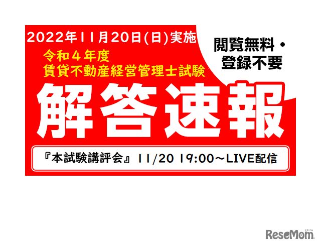 TACは、2022年11月20日に実施される「令和4年度賃貸不動産経営管理士試験」の解答速報を同日にWebサイトで公開する。また、難易度や各分野の所感等を伝える「本試験講評会」も開催する。閲覧無料、登録不要。