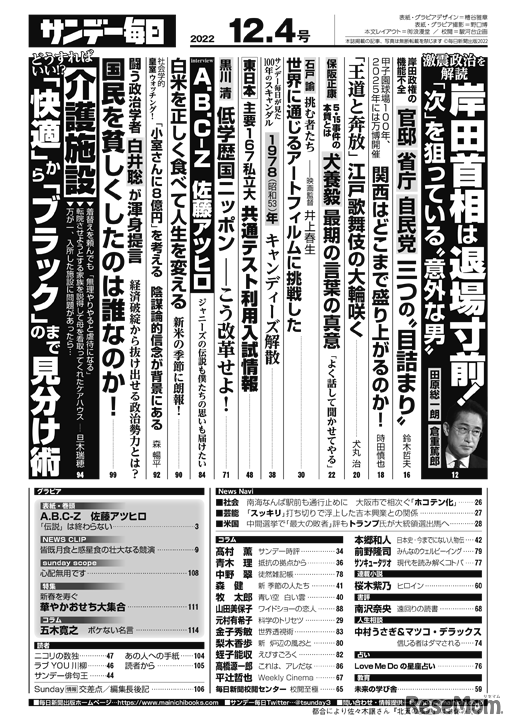 毎日新聞出版は2022年11月21日、東日本・主要私立大学が実施する共通テスト利用入試情報等を掲載した「サンデー毎日」12月4日号を発売した。掲載校は私大167校。