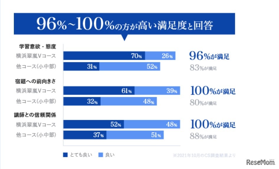 湘南ゼミナール 横浜翠嵐Vコースの顧客満足度調査結果