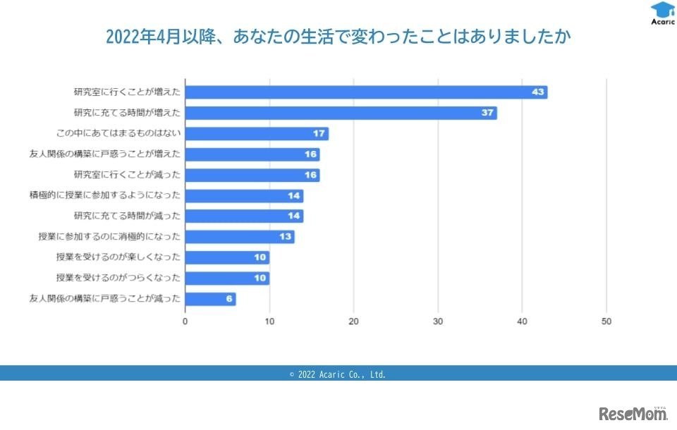 対面授業の復活により研究が活発化している一方で、友人関係の構築に戸惑う大学院生が増えていることが、2022年6月~8月にアカリクが実施した調査より明らかになった。