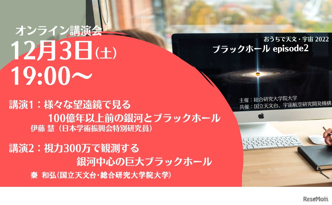 総合研究大学院大学は2022年11月26日・12月3日・12月17日、社会連携事業として「オンライン講演会 おうちで天文・宇宙2022」をオンラインで開催する。参加費は無料。事前申込みが必要。