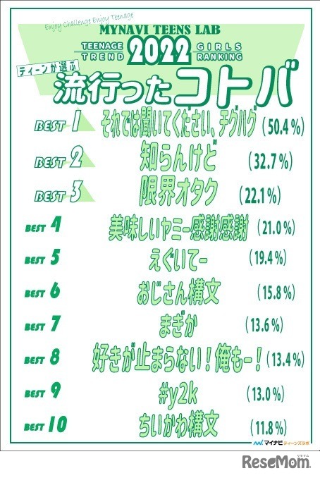 2022年ティーンが選ぶトレンドランキング「コトバ編(トップ10)」