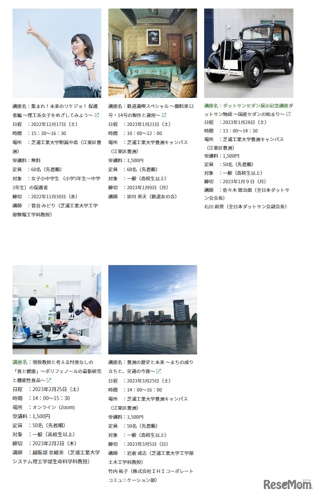 芝浦工業大学は、2022年度12月~3月開催の大人(一般)向け公開講座、子供向け公開講座の情報を公開した。講師もしくはコーディネータを芝浦工業の大学教授や付属高校の教員が務める。