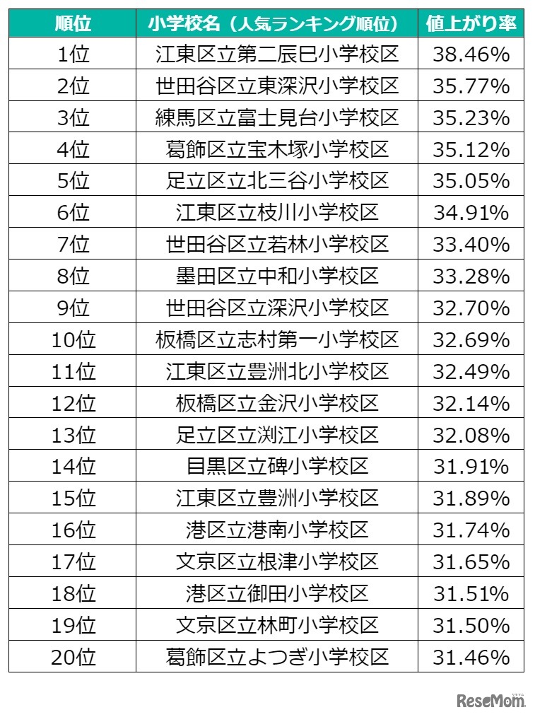 Housmartは、中古マンションの購入ができるアプリ「カウル」会員の検索情報を元にした「東京23区人気公立小学校区ランキング2022」と、東京23区公立小学校区別の中古マンション資産推移データをもとに独自に算出した「中古マンション値上がり学区ランキング」を発表した。