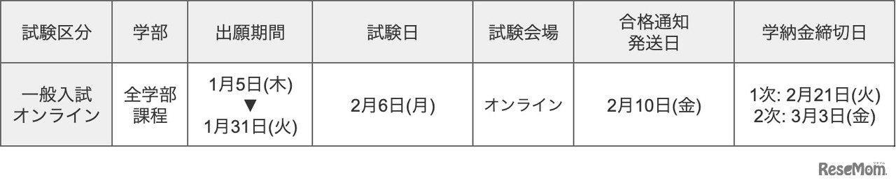 画像出典:名古屋商科大学 一般選抜前期「一般入試オンライン」