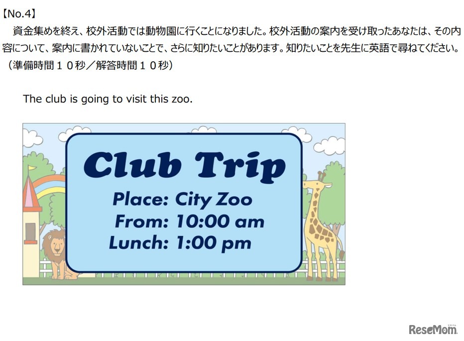 中学校英語スピーキングテスト(ESAT-J)問題の一例