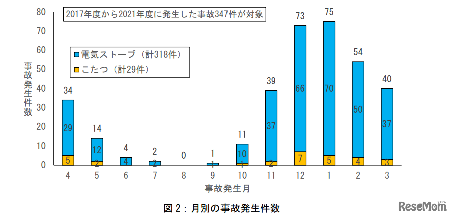 画像出典:製品評価技術基盤機構 月別の事故発生件数