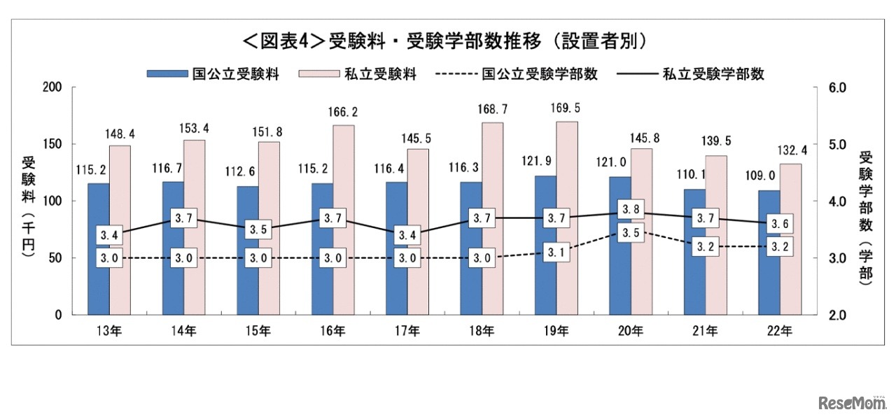画像出典:全国大学生活協同組合連合会「2022年保護者に聞く新入生調査」より 受験料・受験学部数推移(設置者別)